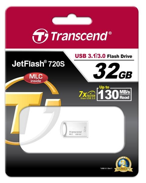 TRANSCEND Flash Disk 32GB JetFlash®720S, USB 3.1, MLC solution (R:130/W:45 MB/s) stříbná
