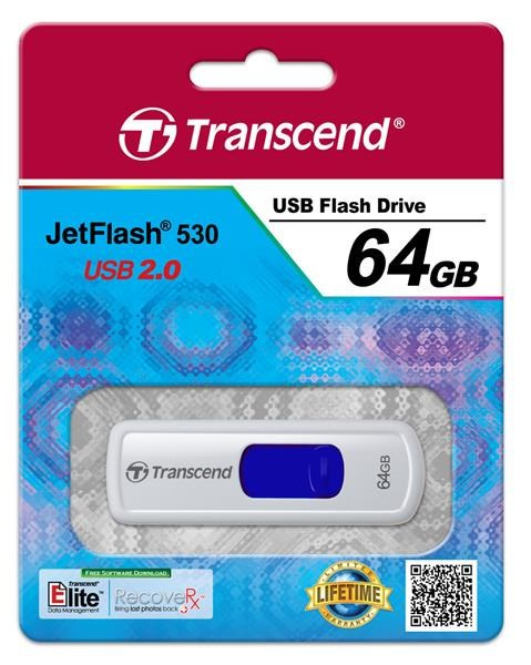 TRANSCEND Flash Disk 64GB JetFlash®530, USB 2.0 (R:16/W:6 MB/s) bílá/modrá Royal