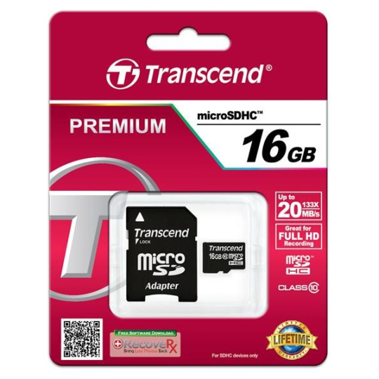TRANSCEND MicroSDHC karta 16GB Class 10 + adaptér