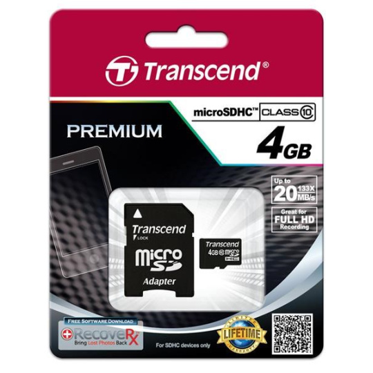 TRANSCEND MicroSDHC karta 4GB Class 10 + adaptér