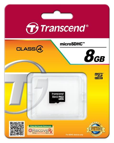 TRANSCEND MicroSDHC karta 8GB Class 4, bez adaptéru