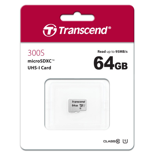 TRANSCEND MicroSDXC karta 64GB 300S, UHS-I U1, bez adaptéru