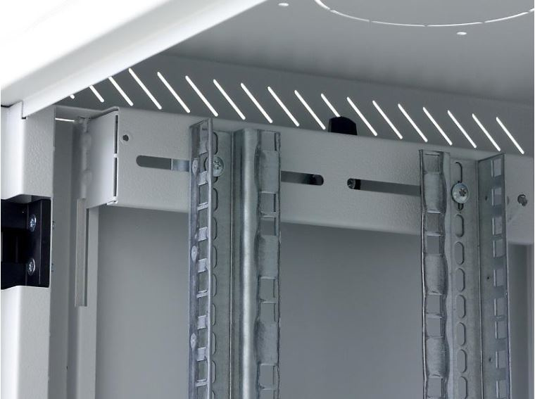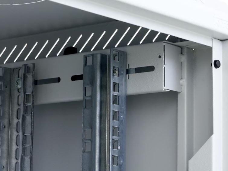 Dva páry 19“ vertikálních lišt jsou plynule nastavitelné v libovolné hloubce rozvaděče. To usnadňuje montáž zařízení i organizaci propojovacích kabelů.
