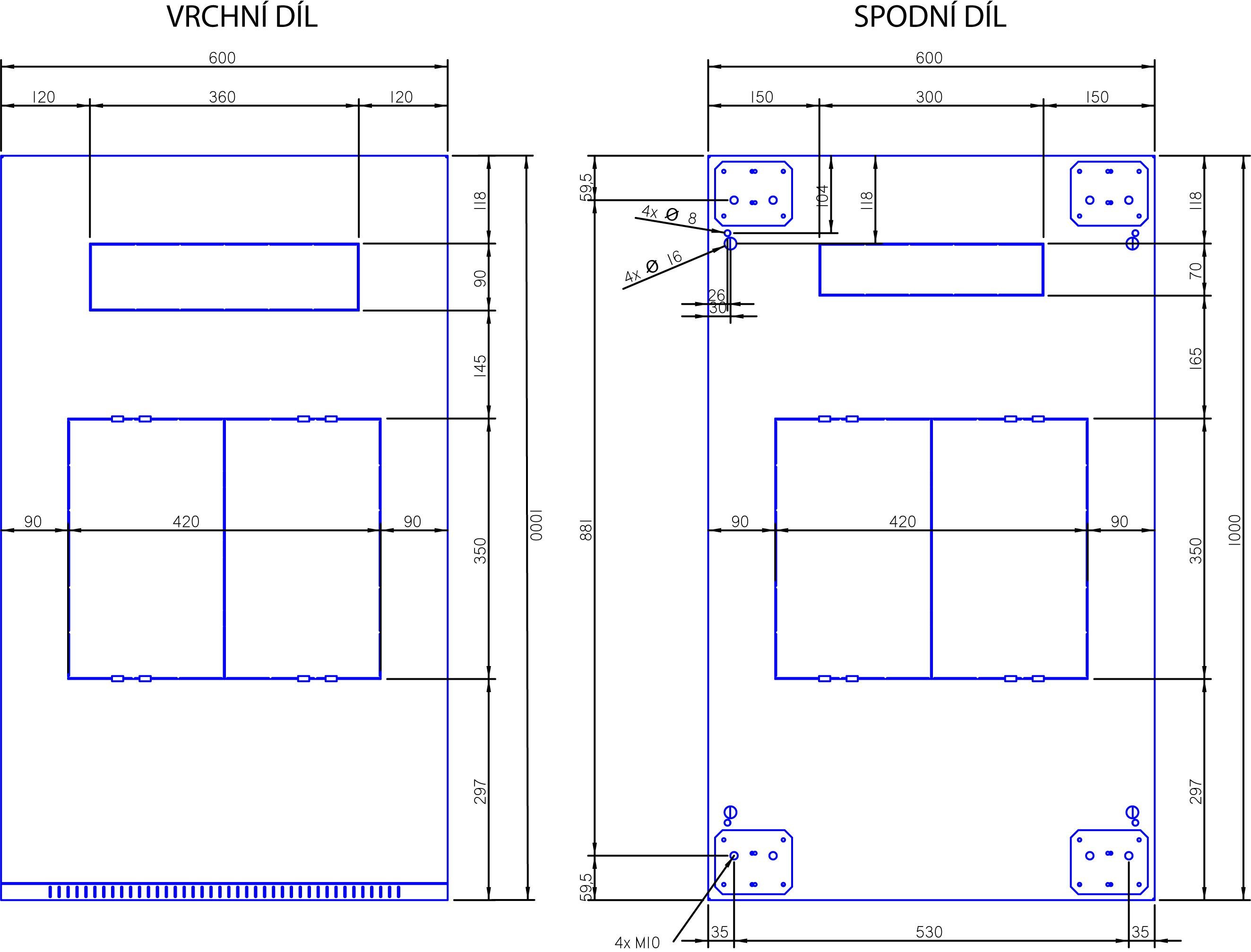 Sklo Plechové dveře s vlepeným sklem se vyrábějí z tvrzeného bezpečnostního skla tl. 4 mm, které je odolné běžným nárazům. Při rozbití tvoří množství drobných úlomků jako automobilové sklo. Z důvodů bezpečnosti doporučujeme po instalaci zařízení do rozvaděčové skříně zavírat dveře, aby nemohlo dojít ke kolizi s jinými předměty. Použité sklo je zkoušeno v certifikované zkušebně a odpovídá požadavkům normy ČSN EN 12150-1+A: Sklo ve stavebnictví – Tepelně tvrzené sodnovápenatokřemičité bezpečnostní sklo. Zkoušené sklo splňuje normu na rozpad skla po rozbití, Certifikát shody CQ-24-2023, Protokol o zkoušce IKATES 58A-2024.