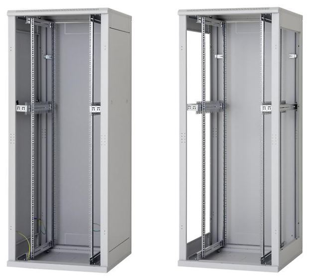 (platí pro šíři rozvaděče 800 mm). Systém umožňuje instalaci posuvných vertikálních lišt v rozponu 19“, 21“ a 23“, přesně podle požadavků instalovaných zařízení.