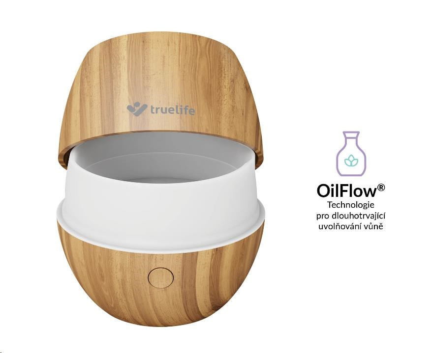 Chcete si doma navodit příjemnou atmosféru k józe či meditaci, nebo jen příjemně relaxovat? S aroma difuzérem Truelife si můžete naordinovat aromaterapii stiskem jednoho tlačítka. Stačí do nádržky s vodou přidat pár kapek vašeho oblíbeného esenciálního oleje a OilFlow® technologie se postará o zbytek. Difuzér eliminuje okolní pachy a provoní vzduch v místnosti vaší oblíbenou vůní. Můžete ho používat i jako zvlhčovač vzduchu. Funguje na principu ultrazvuku, vodu v nádrži mění na jemnou páru, která se mísí se vzduchem v místnosti a téměř okamžitě jej zvlhčuje na optimální hodnotu.