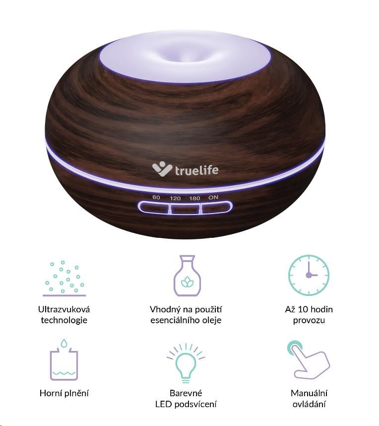 icle id="description_truelife_2019-11-19"> TrueLife AIR Diffuser D5 Dark – Aroma difuzér a zvlhčovač vzduchu Stačí stisknutí jediného tlačítka a aroma difuzér Truelife provoní vzduch v místnosti vaší oblíbenou vůní. Vytvoří vám příjemnou atmosféru pro relaxaci, cvičení jógy nebo meditaci. Stačí do nádržky s ... více