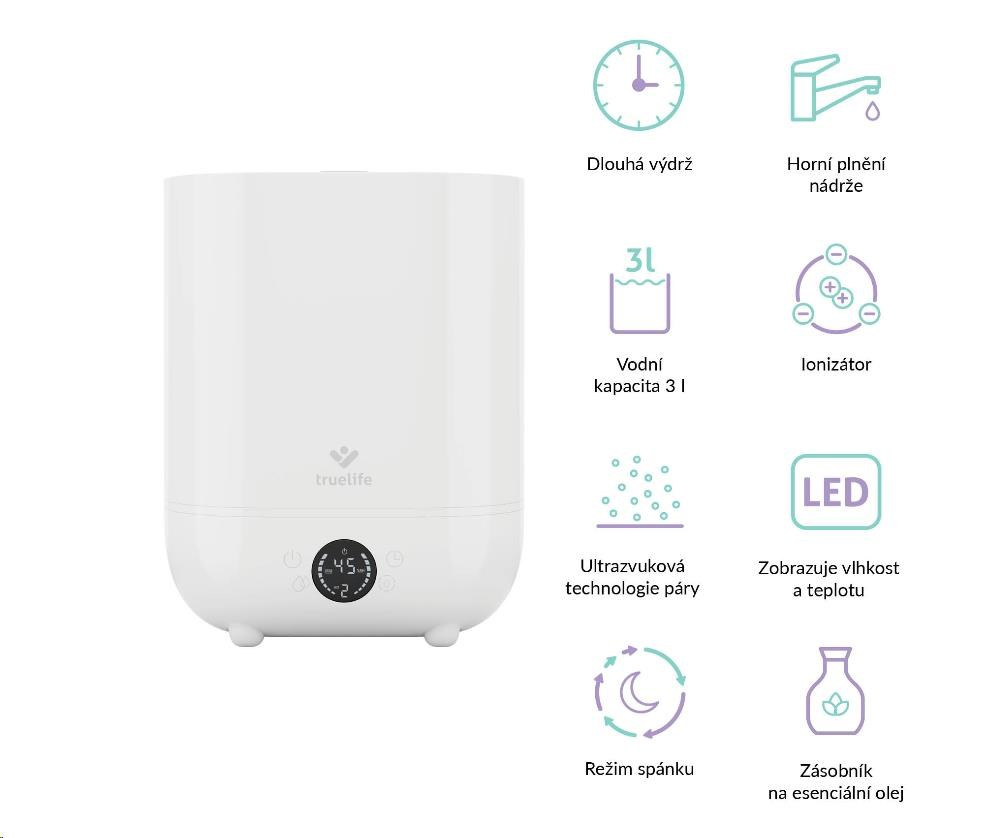 TrueLife AIR Humidifier H5 Touch – Zvlhčovač vzduchu 2v1 s ionizátorem