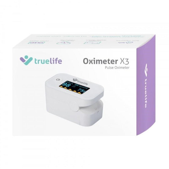 Oxymetr TrueLife X3 zajistí okamžité a přesné měření saturace krevního hemoglobinu kyslíkem a tepové frekvence. Naměřené hodnoty okamžitě a přehledně zobrazí na vestavěném displeji. Je vhodný zejména pro pacienty s respiračním onemocněním nebo onemocněním srdce, ale i pro vrcholové sportovce. Své uplatnění ale nalezne v lékárničce každé domácnosti.