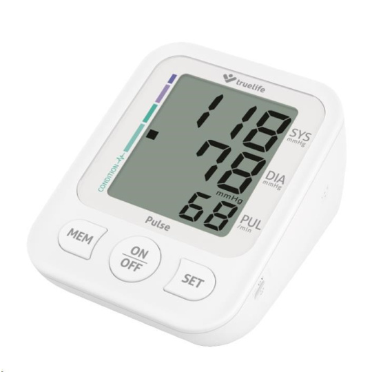 Tlakoměr Truelife Pulse využívá oscilometrickou metodu měření tlaku a funguje na principu nafouknutí manžety, která zajišťuje maximální přesnost naměřených hodnot. Navíc jeho ovládání je velmi jednoduché a vše podstatné zvládnete stiskem tlačítka START/STOP. Naměřené hodnoty zobrazuje velký a dobře čitelný třířádkový displej.