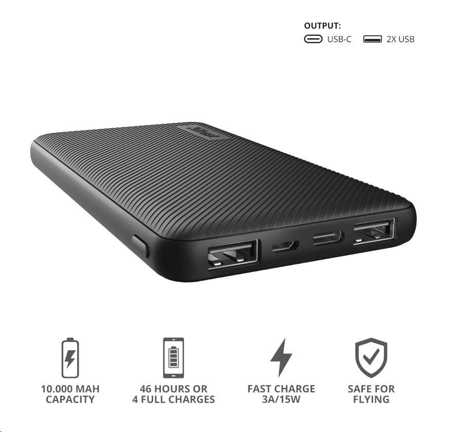 • Fast-recharge the powerbank via included micro-USB cable or USB-C port