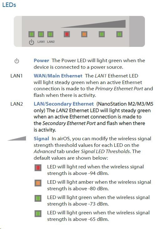 Nanostation M2 disponuje proti verzi "locoM2" dvěma ethernet.porty a výkonnější anténou se ziskem 11dBi. Můžeme tak k jednotce například připojit IP kameru. Díky možnosti distribuce PoE napájení i na tento port není nutné instalovat dva samostatné PoE adaptéry. PoE na druhém portu lze softwarově vypínat/zapínat, lze tak případně vzdáleně restartovat připojené zařízení. PoE adaptér disponuje "RESET" tlačítkem pro uvedení jednotky do továrního nastavení případně TFTP režimu pro obnovu poškozeného firmware.