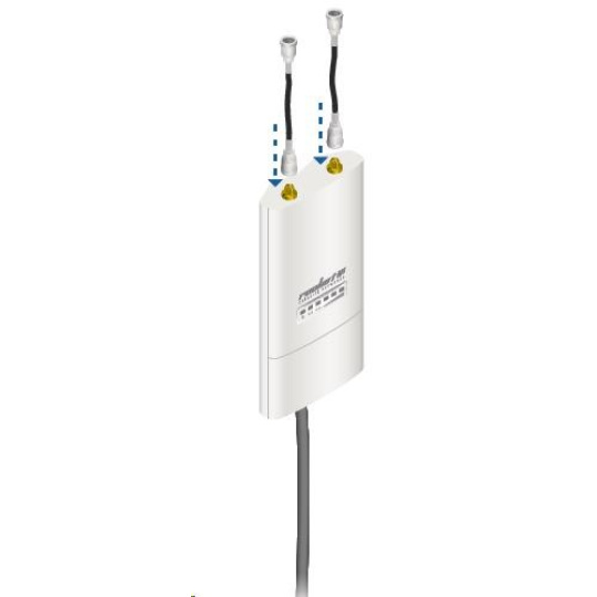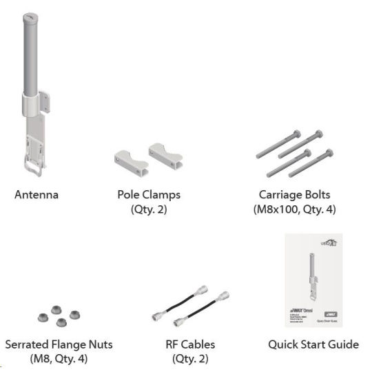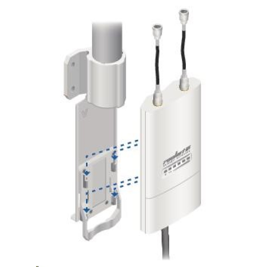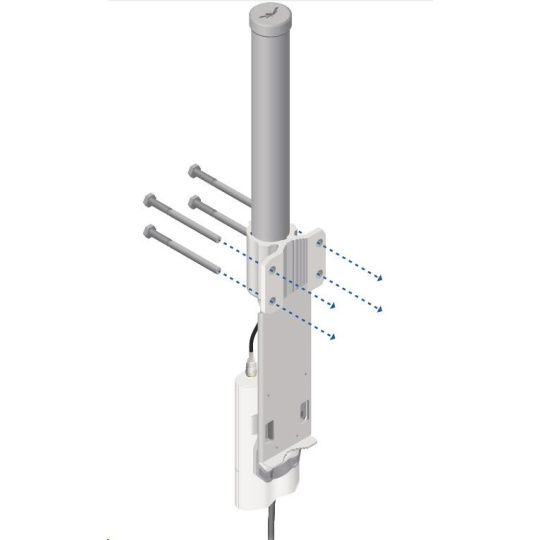 Jedná se o robusní řešení 10dbi všesměrové antény pro přístupové body pracující v pásmu 5GHz a využívajících standardu 802.11n v kombinaci s technologií MIMO. Anténa disponuje dvěma RSMA-female konektory. Součástí dodávky jsou dva voděodolné RSMA pigtaily pro propojení s jednotkou Rocket M5, držák pro tuto jednotku a montážní sada na stožár, viz. obr.