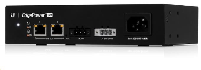 Pro připojení napájených zařízení jsou k dispozici 2 ethernetové porty s možností pasivního 54V PoE Out, rychlostí 100Mbps a 1 výstup na svorkovnici. EdgePower je možné spravovat přes aplikaci UNMS nebo ve vlastním webovém rozhraní. Samozřejmostí je podpora protokolu SNMP.