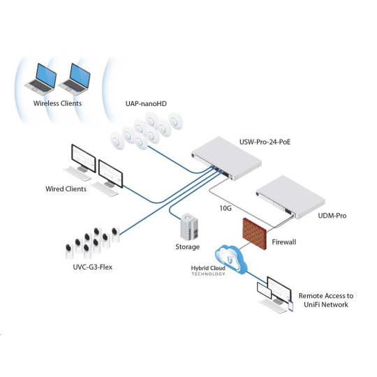 UniFi Dream Machine Pro od Ubiquiti Networks je all-in-one řešení sítě do menších a středně velkých firem. Jedná se o velmi výkonné zařízení o velikosti 1U do 19" racku a kombinuje tyto funkce: