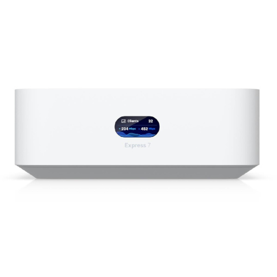 Popis produktu UniFi Express 7 je superkompaktní 10 gigabitová UniFi Cloud Gateway s integrovaným WiFi 7 AP. Pro připojení k síti je vybavena (1) 10Gbps WAN portem a (1) 2.5Gbps LAN portem. Vestavěný Tri-band WiFi 7 AP podporuje nejnovější standard 802.11be s modulační rychlostí až 5,7Gbps v pásmu 6GHz, 4,3Gbps v pásmu 5GHz a 688Mbps v pásmu 2,4GHz s pokročilým šifrováním WPA3. Díky předinstalované aplikaci UniFi Network umožňuje router správu až 30 UniFi zařízení. Kompaktní, ale výkonné provedení zařízení zajišťuje propustnost až 2,3Gbps při aktivním IDS/IPS. Router také podporuje různé typy VPN, včetně site-to-site VPN. Napájení je řešeno přes USB-C 5V/5A, napájecí adaptér je součástí balení. Klíčové vlastnosti • Superkompaktní provedení • Vysoký výkon - propustnost až 2,3Gbps s podporou IDS/IPS • 10G WAN + 2.5G LAN • Vestavěné Tri-band WiFi 7 AP • UniFi Network pro správu až 30 UniFi zařízení • Podpora VPN, včetně site-to-site VPN Obsah balení • Zařízení • Napájecí adaptér • Napájecí kabel • Patch kabel Technické parametry Bezdrátové vlastnosti Bezdrátové frekvence:2.4 + 5 + 6 GHz (triple band) WiFi standardy:802.11n, 802.11a, 802.11ac, 802.11b/g, 802.11ax, 802.11be MU-MIMO:Ano Přenosová rychlost - 5GHz [Mb/s]:4300 Přenosová rychlost - 2.4GHz [Mb/s]:688 Přenosová rychlost - 6GHz [Mb/s]:5700 Vysílací výkon 2.4GHz [dBm]:23 Vysílací výkon 5GHz [dBm]:26 Vysílací výkon 6GHz [dBm]:24 Šifrování:WPA, WPA2, WPA3 2.4GHz MIMO:2 x 2 5GHz MIMO:2 x 2 6GHz MIMO:2 x 2 Typ antény:Vestavěná Roaming:Ano Zisk antény [dBi]:6, 7, 4 Konektory a rozhraní Rychlosti WAN:(1) 100M/1G/2.5G/5G/10G Rychlost LAN:(1) 100/1000/2500Mbps Gigabit LAN:Ano Ostatní:LCD displej Napájení Typ napájení:USB-C Max. spotřeba energie [W]:22 Napájení přes konektor/svorkovnici:5V / 5A Fyzické charakteristiky Provedení:Desktop Použití:Vnitřní Šasi:Plastové Tlačítka:Reset Provozní teplota [°C]:-10 až 40 Hmotnost [g]:422 Šířka [mm]:117 Výška [mm]:43 Hloubka [mm]:117 Hardware CPU:ARM Cortex-A53 Frekvence CPU [MHz]:1500 Počet CPU jader:4 RAM [MB]:3072 Software Podporované VPN:L2TP, IPSec, OpenVPN, WireGuard Předinstalovaný kontroller:UniFi Network Operační mód:AP Router Management:UniFi Network Podpora IPv6:Ano.