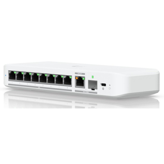 Popis produktu Ubiquiti UniFi Switch Flex 2.5G je kompaktní switch určený pro rozšíření sítě v domácích i kancelářských prostředích. Nabízí 8x 2.5Gbit porty, které umožňují snadnou integraci zařízení s vyššími přenosovými rychlostmi, jako jsou moderní přístupové body, servery nebo NAS úložiště. Switch podporuje správu prostřednictvím aplikace UniFi Network, což usnadňuje jeho konfiguraci a dohled nad sítí.  Jednou z jeho klíčových funkcí je podpora napájení přes ethernet, což znamená, že zařízení lze napájet přímo přes síťový kabel pomocí PoE vstupu na prvním portu (802.3at / POE+), případně pak pomocí přiloženého USB-C adaptéru.  Svým minimalistickým designem je ideální pro umístění na pracovním stole nebo třeba montáž na stěnu. Je plně kompatibilní se systémy UniFi a umožňuje snadné škálování podle potřeby.  Obsah balení: Zařízení Napájecí adaptér USB-C (5V / 3A) Vrtací šablona Držák na zeď Montážní sada.