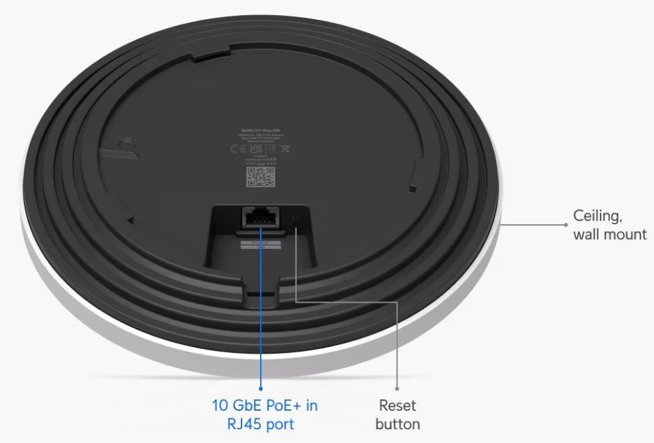 Popis produktu Ubiquiti U7-Pro-XG je nový WiFi 7 UniFi AP. Jedná se o tri-band access point s rychlostí přenosu 5,8Gbps v pásmu 6GHz, až 4,3Gbps v 5GHz pásmu a až 688 Mbps v pásmu 2,4GHz a pokročilým šifrováním WPA3. U7-Pro-XG je určeno k WiFi pokrytí vaší domácnosti, kanceláře, hotelových prostor nebo skladu s podporou až 300+ připojených klientů. Plná podpora roamingu zajišťuje plynulé předávání připojených klientů mezi jednotlivými AP. Pro připojení do sítě je AP vybaveno 10G ETH portem, který slouží i pro napájení pomocí PoE 802.3at nebo pasivním PoE v rozsahu 42,5-57V DC, PoE injektor není součástí balení. Výhody UniFi řešení • Roaming - přechod mezi jednotlivými AP bez výpadků • Wireless uplink – ideální pro místa, kam nelze přivést datový kabel • Až 8 SSID • Detailní statistiky provozu • Guest síť • Load balancing - udržování rovnoměné zátěže / přepínání klientů • Omezování rychlosti pro každé SSID Obsah balení • Zařízení • Kit k přichycení na strop • Sada šroubků Technické parametry Bezdrátové vlastnosti Bezdrátové frekvence:2.4 + 5 + 6 GHz (triple band) WiFi standardy:802.11n, 802.11a, 802.11ac, 802.11b/g, 802.11ax, 802.11be MU-MIMO:Ano Přenosová rychlost - 5GHz [Mb/s]:4300 Přenosová rychlost - 2.4GHz [Mb/s]:688 Přenosová rychlost - 6GHz [Mb/s]:5800 Vysílací výkon 2.4GHz [dBm]:23 Vysílací výkon 5GHz [dBm]:26 Vysílací výkon 6GHz [dBm]:24 Šifrování:WPA, WPA2, WPA3 2.4GHz MIMO:2 x 2 5GHz MIMO:2 x 2 6GHz MIMO:2 x 2 Typ antény:Vestavěná Počet vestavěných antén:6 Roaming:Ano Zisk antény [dBi]:6, 4, 5 Konektory a rozhraní Rychlost LAN:(1) 100M/1G/2.5G/5G/10G Gigabit LAN:Ano Napájení Napájení přes PoE:802.3at, 42 .. 57V DC Typy PoE:PoE-In (pouze) Max. spotřeba energie [W]:22 Fyzické charakteristiky Použití:Vnitřní Tlačítka:Reset Provozní teplota [°C]:-30 až 40 Hmotnost [g]:750 Šířka [mm]:206 Výška [mm]:206 Hloubka [mm]:33 Software Operační mód:Access Point Výchozí IP adresa:192.168.1.20, Dynamická z DHCP.