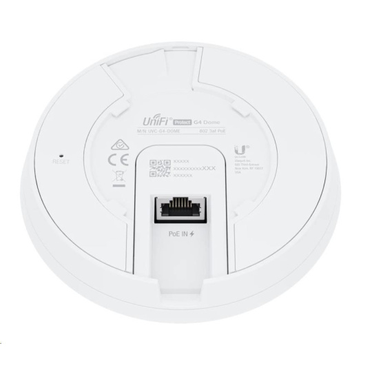 UniFi Protect G4 Dome kamera disponuje 4MP snímačem (2688 x 1512px) při 24fps, fixním objektivem (cca 4mm), IR přísvitem pro noční vidění, mikrofonem a reproduktorem. Kamera má velmi robustní tělo z kovového materiálu, odolnost IK08 proti vandalům a IPx4 proti povětrnostním vlivům. Do sítě se připojuje pomocí Gigabitového ethernetového portu, který podporuje napájení přes kabel - 802.3af PoE.