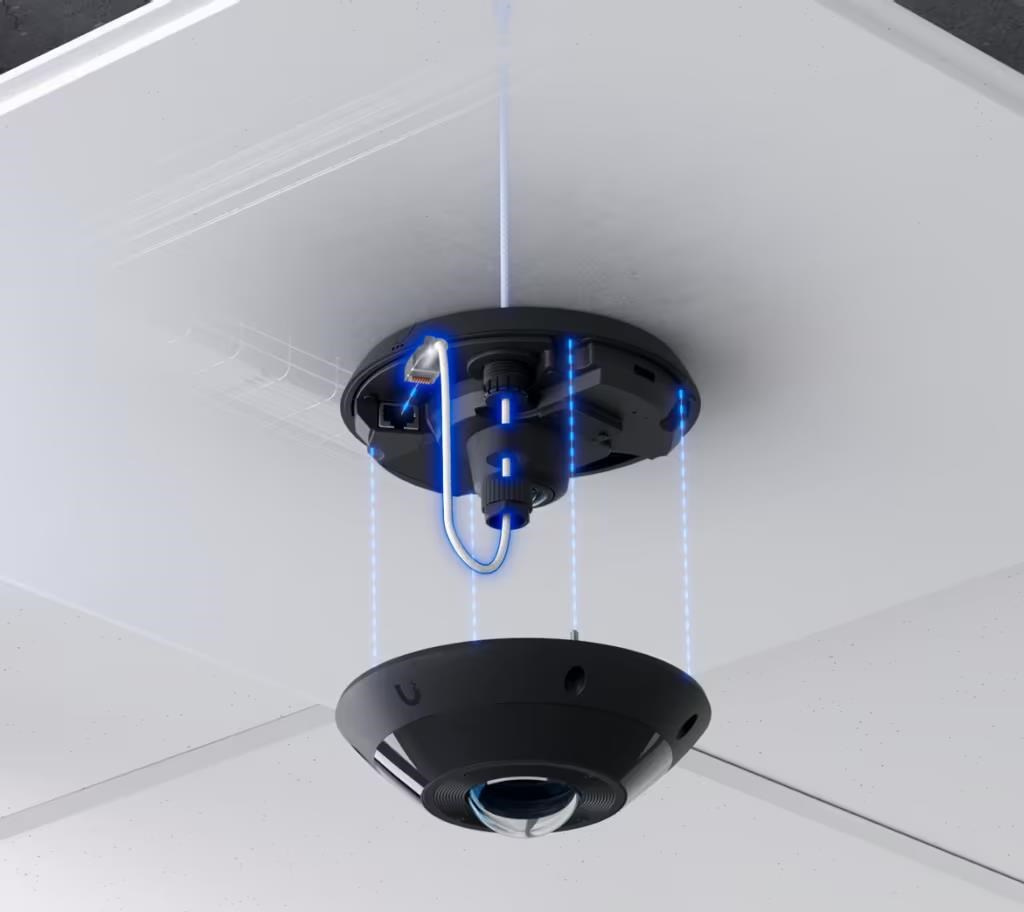All-weather, vandal-resistant 12MP PoE camera with panoramic 360° coverage, digital pan-tilt-zoom functionality, and smart IR functionality..