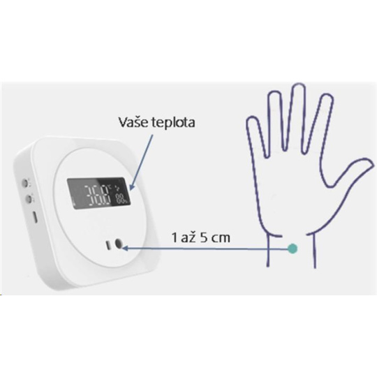 OHE-TWP02-D je velmi jednoduché zařízení, sloužící k rychlému orientačnímu měření teploty člověka ze zápěstí. Terminál lze provozovat ve třech různých režimech provozu • Automatický • Měření teploty a vlhkosti prostředí • Režim měření tělesné teploty. Pro správnou funkčnost zařízení terminál disponuje dvěma senzory teploty a jedním senzorem vlhkosti. Při zvolení Automatického režimu se Terminál, v případě potřeby měření tělesné teploty, přepíná okamžitě a to na základě integrovaného ToF (Time of Flight) snímače. ToF snímač detekuje IR záření spektra vyzařovaného z povrchu lidského těla. OHE-TWP02-D-S31 je určen pro vnitřní nenáročné aplikace s nízkou průchodností osob, jako jsou komunity, kanceláře, domácnosti a podobně. Provozovat lze pouze ve vnitřním tepelně a emisně stabilním prostředí mimo průvan a povětrnostní vlivy. Není určen pro měření osob bezprostředně po příchodu z venkovních prostor (z velmi chladných, nebo naopak teplých prostor). V případě příchodu z venkovních prostor je doporučeno vyčkat 1 minutu v místnosti s terminálem pro stabilizaci teploty povrchu těla. Zařízení postrádá pravidelnou automatickou dokalibraci senzoru s okolním prostředím. Díky tomu nemůže nahradit profesionální vstupní systémy s měřením teploty. Zařízení je dodáváno bez USB zdroje, pouze s napájecím kabelem microUSB-USB..