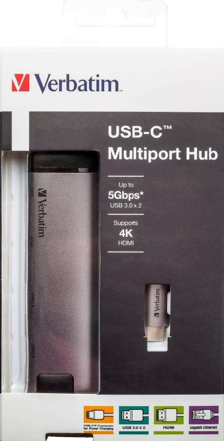 VERBATIM Dokovací stanice USB-C 5v1, 1xHDMI, 1xSB-C, 2xUSB, 1xRJ45, šedá