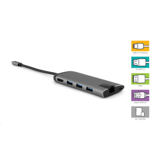 VERBATIM Dokovací stanice USB-C 7v1, 1xHDMI, 1xUSB-C, 3xUSB, 1xRJ45, čtečka SD karet, šedá