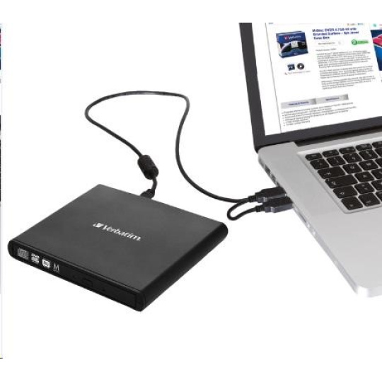 Pokud vlastníte notebook, ultrabook či netbook, je toto malé zařízení přesně to, co potřebujete. Můžete ho používat pro instalaci softwaru nebo k vytváření záloh. Externí CD/DVD Slimline vypalovačka Verbatim je napájena z portu USB, takže nepotřebujete žádný napájecí adaptér. Je jen o něco větší než DVD a snadno se vejde do kapsy, můžete ji tedy vždy nosit s sebou!