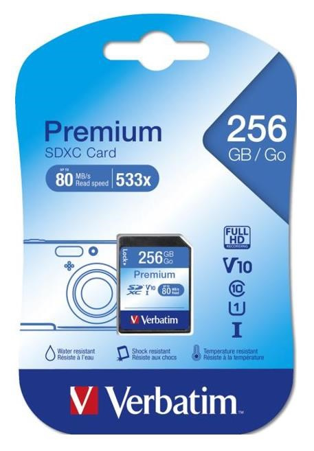 VERBATIM SDXC karta 256GB Class 10, UHS-1 (R:80/W:10 MB/s)