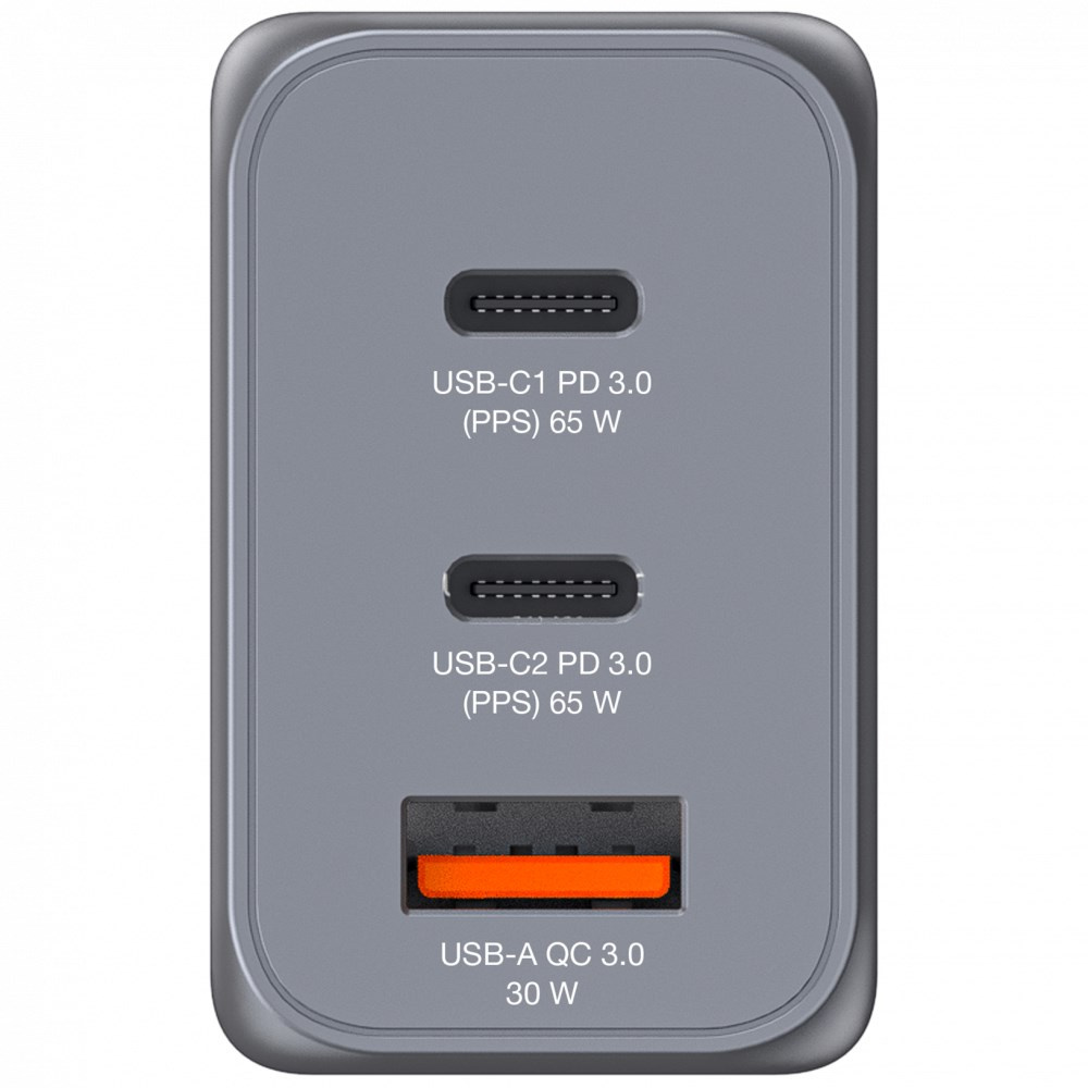 | Výkon | USB-C1 Max 65W USB-C2 Max 65W USB-A Max 30W Dohromady Max 60W |