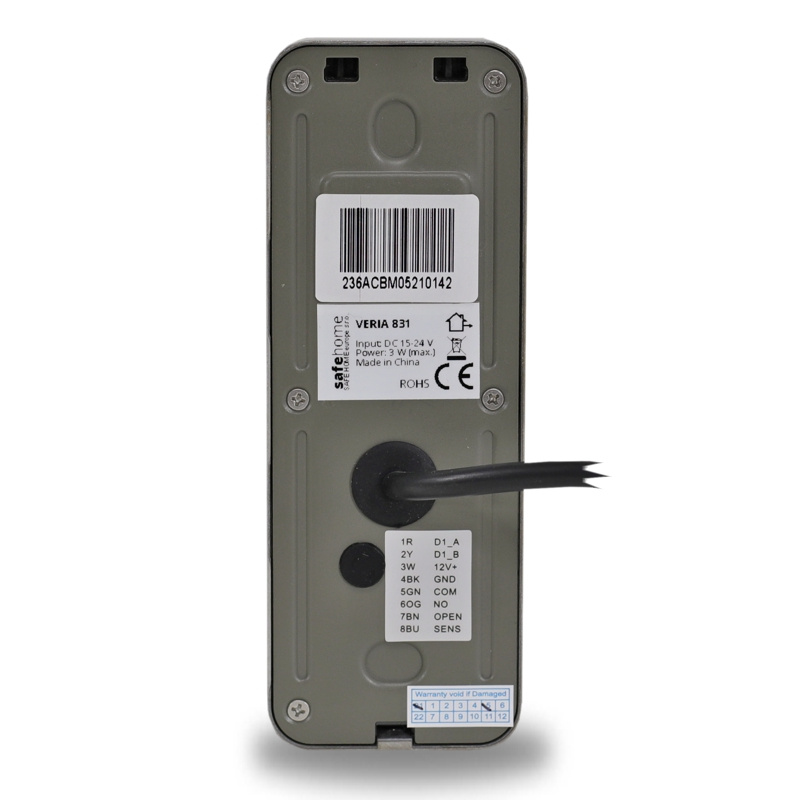 Vstupní barevná kamerová jednotka videotelefonu VERIA 831RFID v elegantním anti-vandal provedení je určená pro 2-vodičové sady videotelefonů VERIA 2-WIRE.