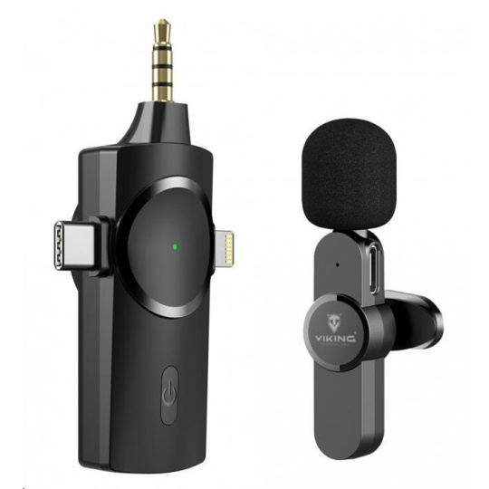Viking bezdrátový mikrofon s klipem M360, konektor USB-C / Lightning / 3,5 mm jack