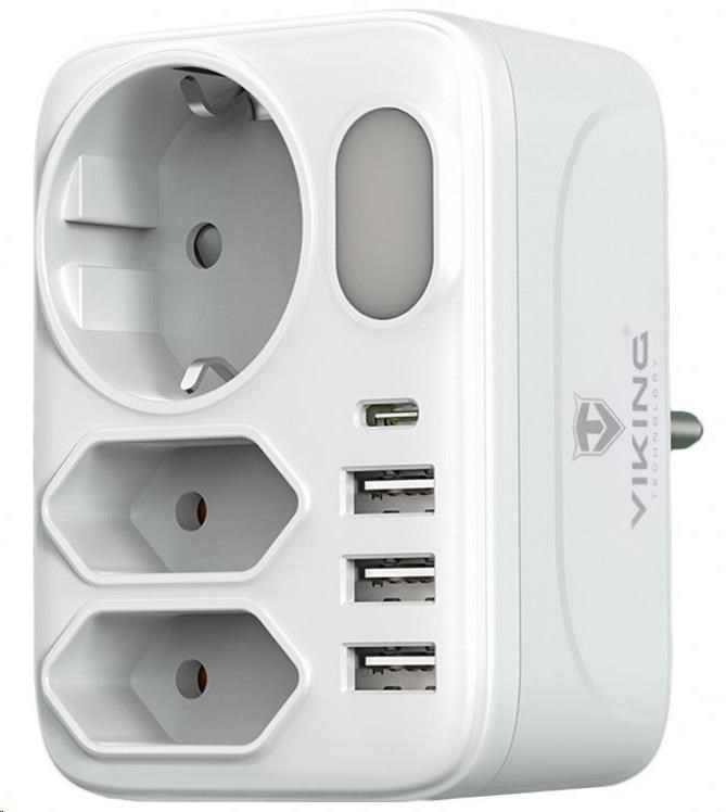 Viking AC34 - revoluční elektrický rozbočovač, který rozšiřuje standardní zásuvku na další 3 AC 230V výstupy, 3 USB-A výstupy a 1 USB-C výstup. Můžete tak nabíjet až 7 zařízení současně!