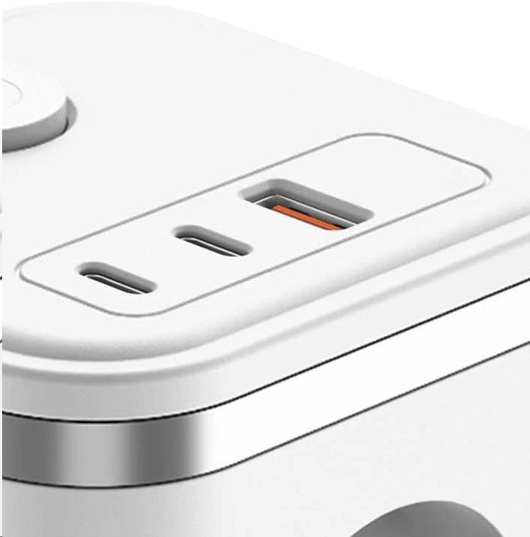 Viking síťový adaptér Y33, 3x 230 V, 1x USB-A, 2x USB-C, tlačítko ON/OFF, bílá