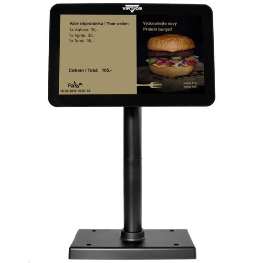 - Po připojení k pokladnímu systému nebo PC funguje jako další monitor - rozšířená plocha