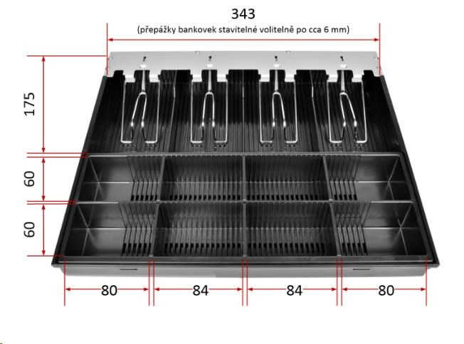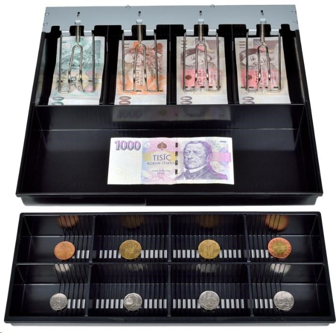 | Přihrádky | 4× pro bankovky 8× pro mince - vyjímatelný mincovník |