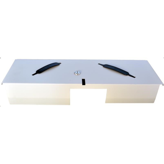obsahuje Zásuvku s víkem, vnitřní plastový pořadač na peníze a mince, kovový uzamykatelný kryt na pořadač