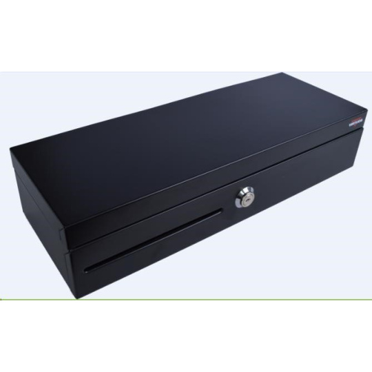 Virtuos pokladní zásuvka FT-460C1; Flip top, bez víka, 9-24V, černá - s kabelem