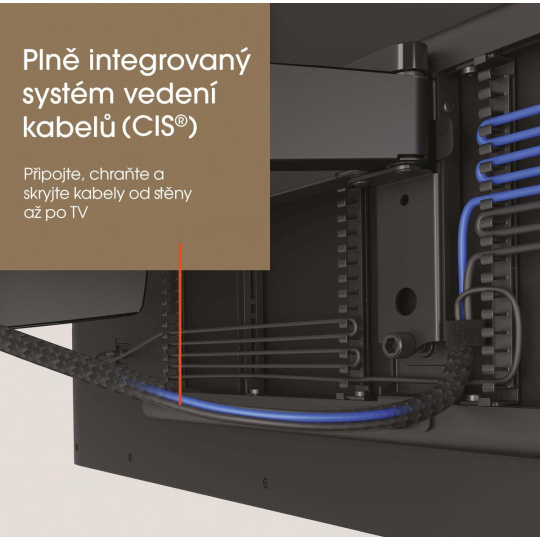• Plně integrovaný systém vedení kabelů (CIS®) - Připojte, chraňte a skryjte kabely od stěny až po televizor