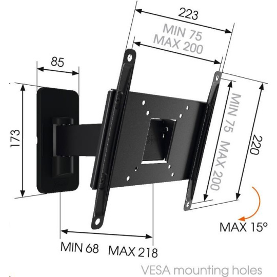 MA 2030 Vogel´s Polohovatelný držák pro malá LCD Univerzální držák s jednoduchým ramenem maximální poměr výkon/cena dva klouby, náklon jednoduchá montáž univerzální uchycení 75x75,100x100, 200x100 a 200x200 veškerý potřebný montážní materiál je součástí balení Specifikace výrobku nosnost 15 kg VESA... více