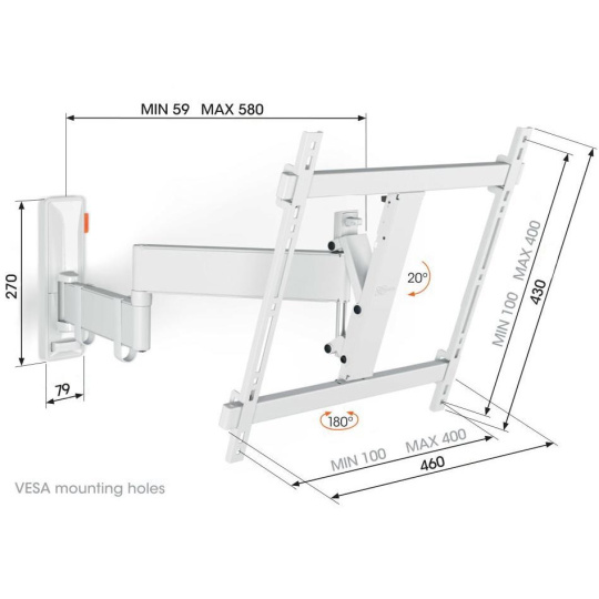 - Otočte televizor až o 180° díky 58 cm dlouhým ramenům