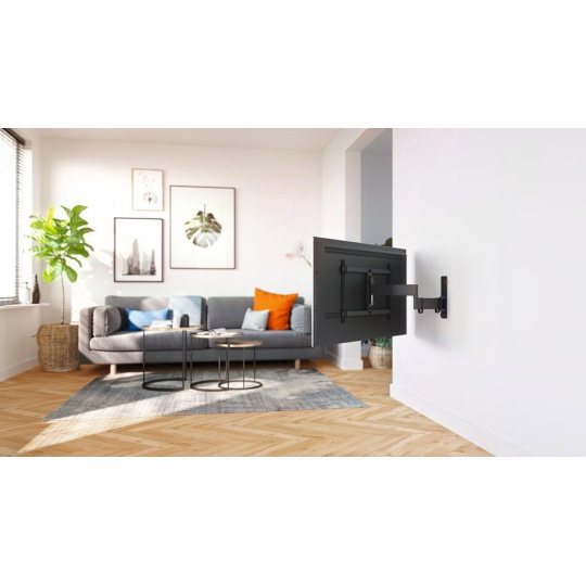 S tímto stylovým nástěnným držákem řady COMFORT Full-Motion+ si můžete sledování svého velkého televizoru maximálně užít. TV 3643 se může otáčet až o 180° a naklánět až o 20° pro optimální pohodlí při sledování. Je navržen pro intenzivní používání, takže je ideální pro rodiny s dětmi. Váš televizor bude zaručeně bezpečně a spolehlivě upevněn. Držák je vhodný pro televizory s úhlopříčkou 40 až 77 palců a hmotností do 35 kg.