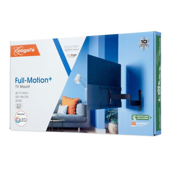 Stylový. Bezpečný. Možnost otočení až o 180°. A speciálně vyvinutý pro velké televizory OLED. S tímto "rodinným" nástěnným držákem řady COMFORT Full-Motion+ si svůj krásný televizor OLED užijete na maximum. I po letech intenzivního používání funguje stále stejně dobře jako první den. Nástěnný držák je vhodný pro televizory OLED s úhlopříčkou 40 až 77 palců a hmotností do 35 kg.