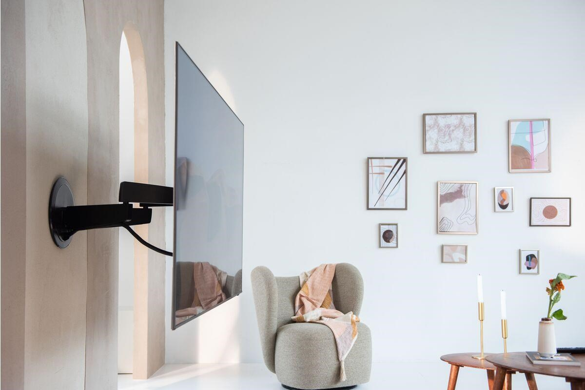 Kabely podél stěny budete chtít samozřejmě také stylově schovat. To můžete provést pomocí hliníkového kabelového sloupku TVA 7000 v bílé nebo černé barvě. Bez problémů ho připojíte k nástěnné desce nástěnného držáku televizoru SIGNATURE MotionMount. Je to tedy ideální řešení.