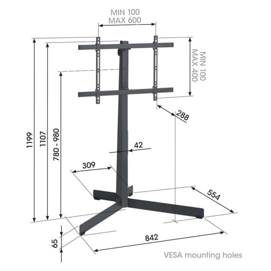 • Snadno nastavitelná výška, a to i s namontovaným televizorem