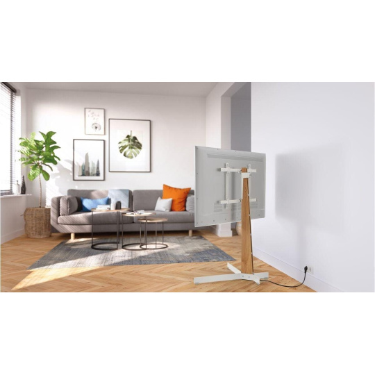 Představujeme Vogel's TVS 3695W, dokonale flexibilní, volně stojící TV stojan. Snadno umístěte a nasměrujte svůj televizor díky stojanu s bezpečným, robustním a stylovém designem. TVS 3695W je vyroben z prémiového dubového dřeva s certifikací PEFC a oceli a je ideální pro téměř všechny televizory s úhlopříčkou 40”-77” a hmotností do 50 kg. Ocelové prvky jsou lakovány na bílo.
