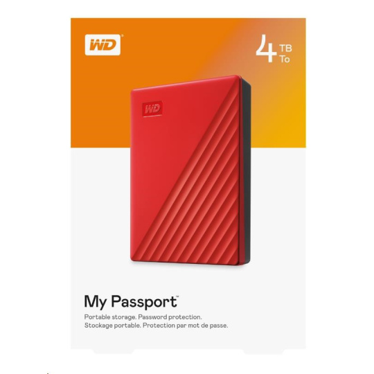WD My Passport Portable 4TB, Externí HDD, USB 3.0, červená