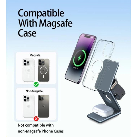- Univerzální nabíjení 3v1: Nabíjejte současně svůj iPhone, Apple Watch, AirPods či jiné sluchátka s podporou bezdrátového nabíjení.