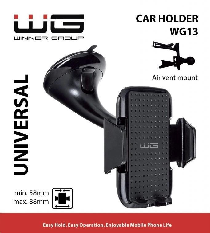 Univerzální držák na přední sklo vašeho auta. Držák přiložíte na přední sklo auta a pomocí přísavky držák nalepíte. V případě, že budete držák chtít přemístit nebo zcela sundat, je to možné provést velmi jednoduše. Mějte díky držáku svůj telefon na viditelném místě, využívejte jeho funkce a zároveň jezděte bezpečně. Vhodný pro všechny zařízení od 58 do 88 mm..