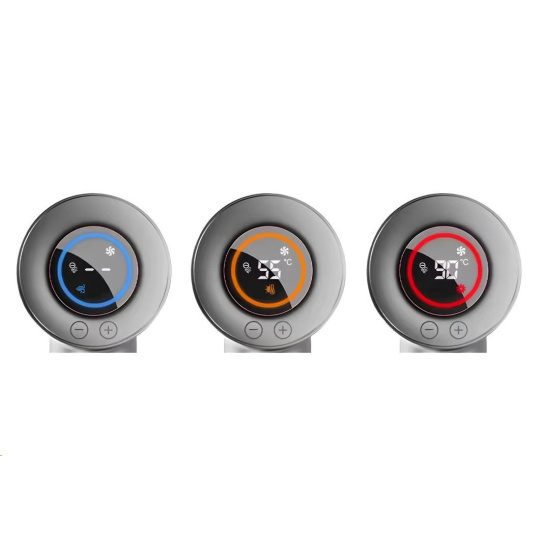- Digitální displej – jasné a přehledné zobrazení teploty a režimu foukání